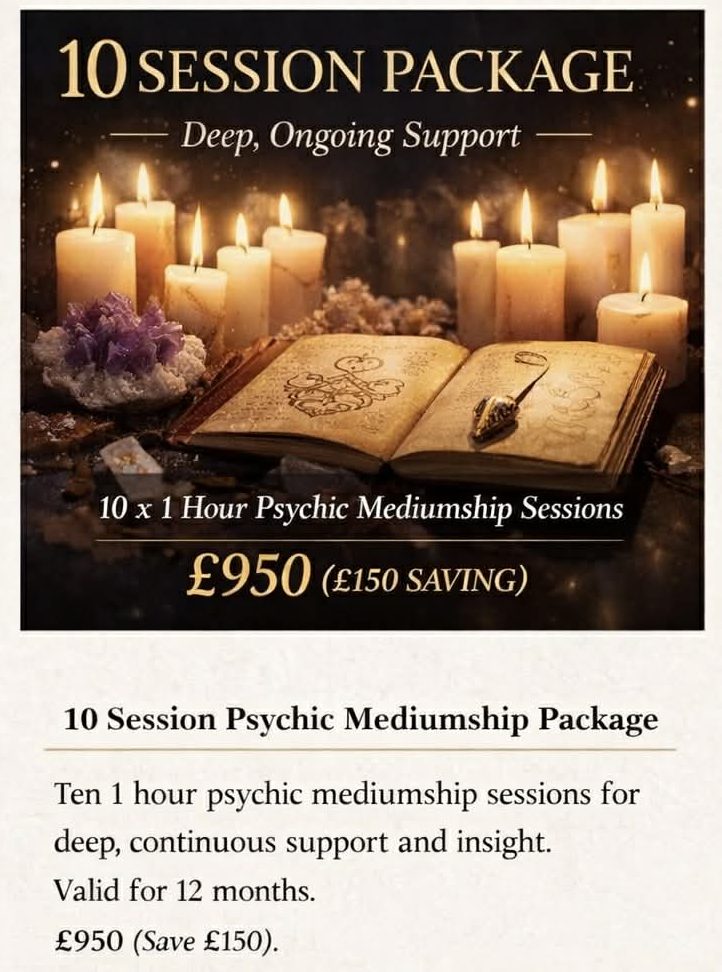 All sessions are conducted as blind readings – I need no information from you in advance. I work evidentially, bringing through specific names, dates, memories and personal details that leave no doubt you’re truly connecting with your loved one or receiving authentic spiritual guidance.